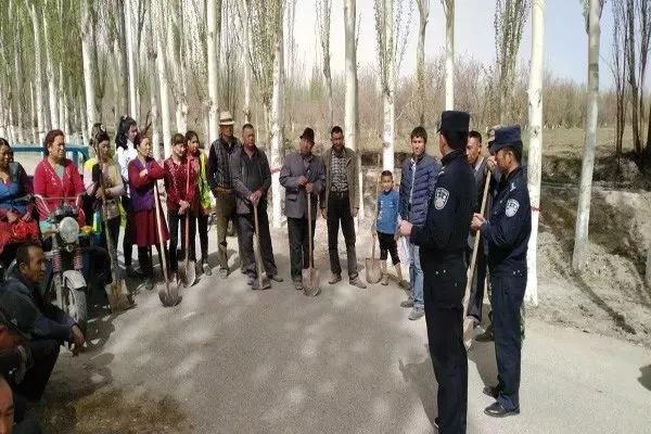 烏恰縣公安局民輔警在田間地頭宣傳掃黑除惡相關內容