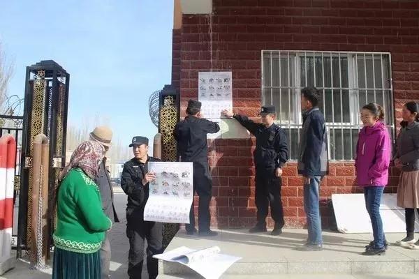 阿合奇縣公安局民輔警張貼發放掃黑除惡宣傳畫冊