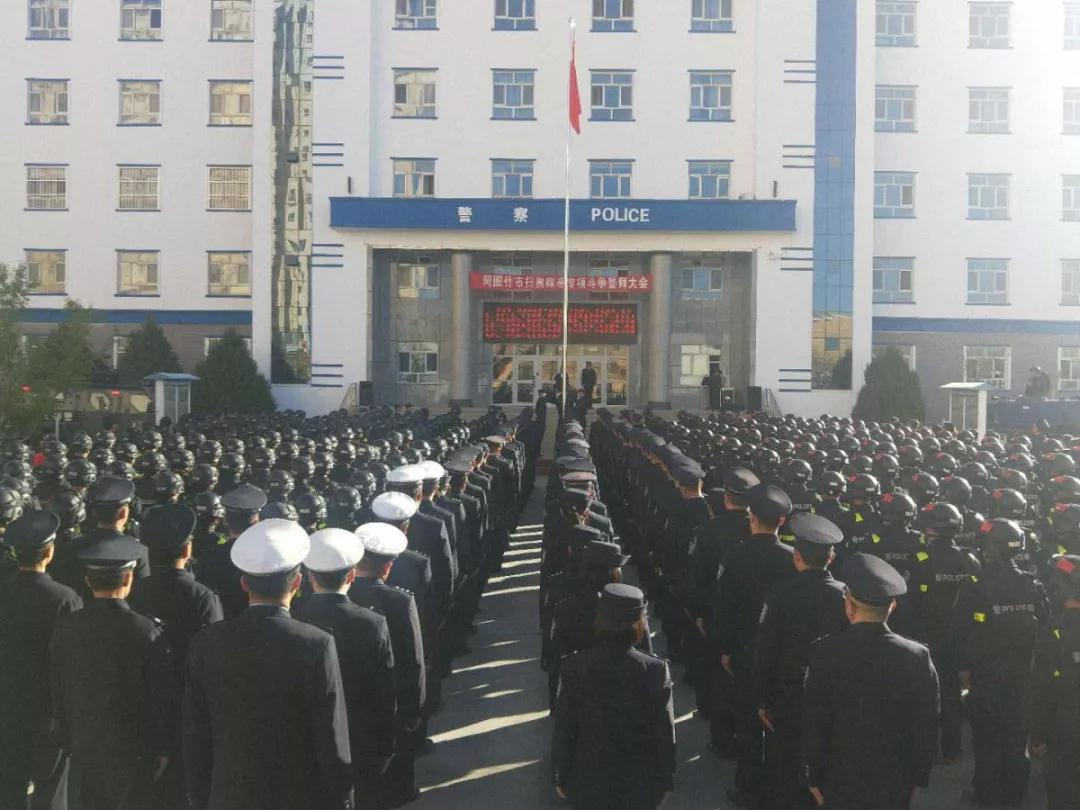 4月7日上午,阿圖什市公安局舉行掃黑除惡專項斗爭誓師大會,展示掃黑除惡的信心和決心。