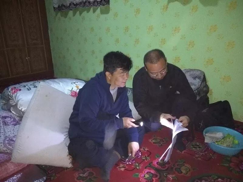 凌晨一點,村民努爾麥麥提家中的臥室還亮著燈。法警總隊的結親干警和高院駐瓊庫勒村第一書記、工作隊隊長魏鋒還在交流白天入戶走訪的相關情況。駐村工作隊隊員與結親干警搭配住戶,讓信息交流更加充分,工作思路更加開闊。