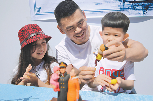 西安游客王依帆被一對歌舞造型的面塑作品所吸引。作品名為《我們新疆好地方》,作者是市級非物質文化遺產面塑項目傳承人懷元辰。
