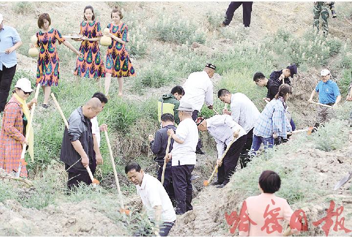 新疆平安網訊(哈密日報記者 曹新加)6月9日,哈密市伊吾縣下馬崖鄉清泉節盛大開幕。當地農牧民身著節日盛裝和縣鄉干部、官兵民警一起清理泉眼、疏通渠道、觀看演出,共同歡慶清泉節。
