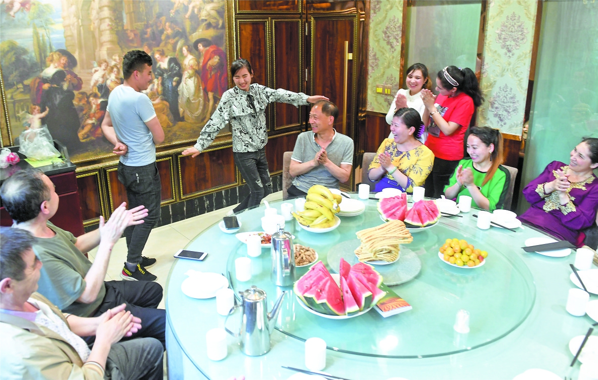 6月5日,新疆醫科大學附屬腫瘤醫院醫護人員和務工人員開展民族團結聯誼活動