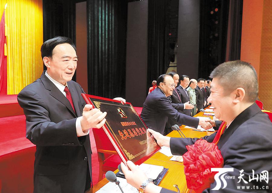 陳全國講話雪克來提·扎克爾主持肖開提·依明努爾蘭·阿不都滿金孫金龍出席李鵬新宣讀表彰決定