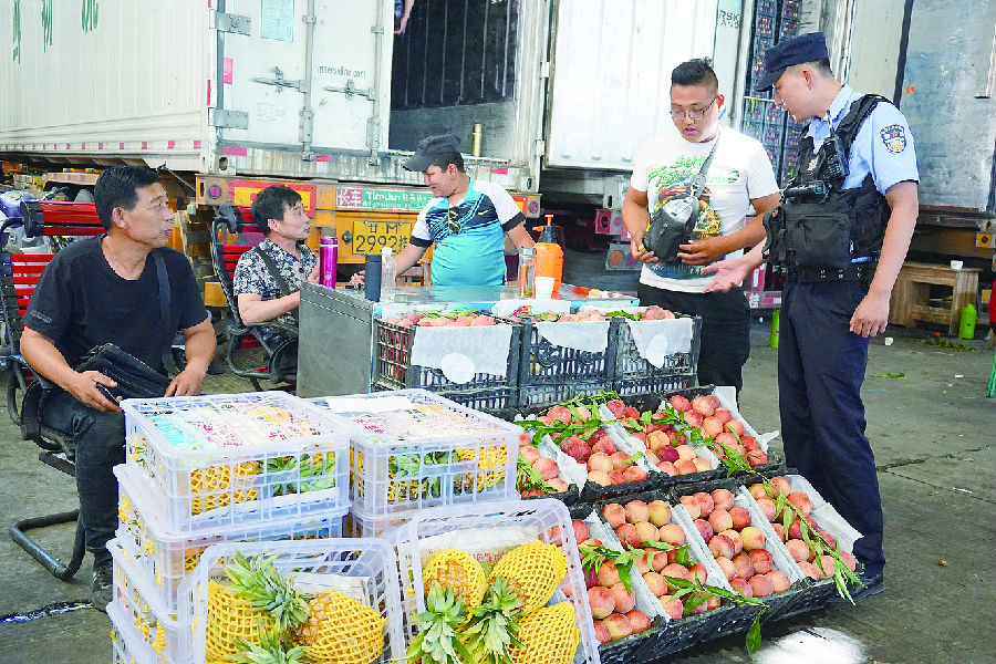 “別激動!咱有事說事、有理說理。”7月10日11時45分,在烏魯木齊市九鼎農貿市場果品區一商鋪前,商戶李某和客戶張某爭執得臉紅脖子粗,接到警情立即趕來的民警趙海通急忙將兩人拉開勸說。