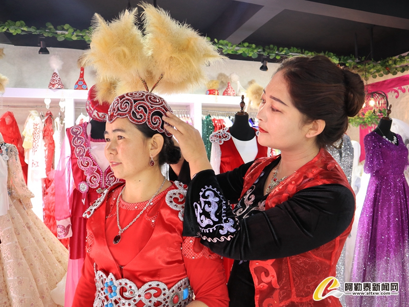 同時,工作隊為了幫助沙依蘭拓寬銷售渠道,以“旅游+電商”的模式,充分利用微信、抖音等平臺宣傳,與青河縣攝影公司簽訂合作協議,針對游客出租服飾,開拓旅拍業務,迅速打開知名度,月人均收入實現1萬余元。