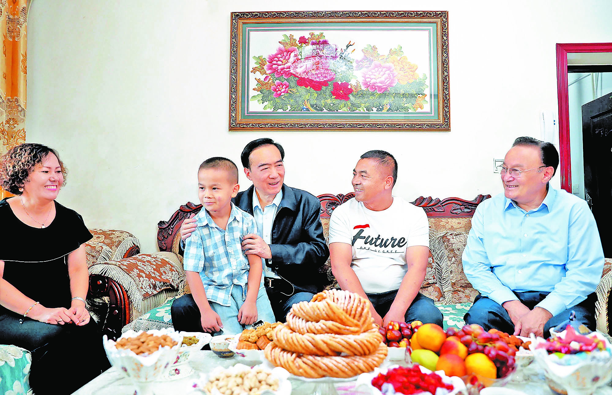9月6日至7日,自治區黨委書記陳全國,自治區黨委副書記、自治區主席雪克來提·扎克爾在哈密市調研。圖為9月7日,陳全國、雪克來提·扎克爾在伊州區麗園社區走訪看望居民艾沙·阿克尤一家人,仔細詢問家庭生活情況。新疆日報記者 崔志堅 攝