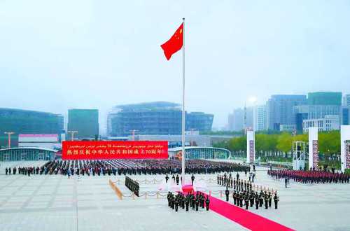 新疆平安網訊 在舉國上下歡慶中華人民共和國成立70周年之際,1日清晨,自治區在新疆國際會展中心舉行莊嚴的升國旗儀式,隆重慶祝中華人民共和國成立70周年,共同衷心祝愿偉大祖國繁榮昌盛,深情表達全區各族干部群眾在以習近平同志為核心的黨中央堅強領導下,堅持以習近平新時代中國特色社會主義思想為指導,深入貫徹落實新時代黨的治疆方略特別是社會穩定和長治久安總目標,團結一心、艱苦奮斗,為實現中華民族偉大復興中國夢不懈奮斗的堅強信心和決心。
