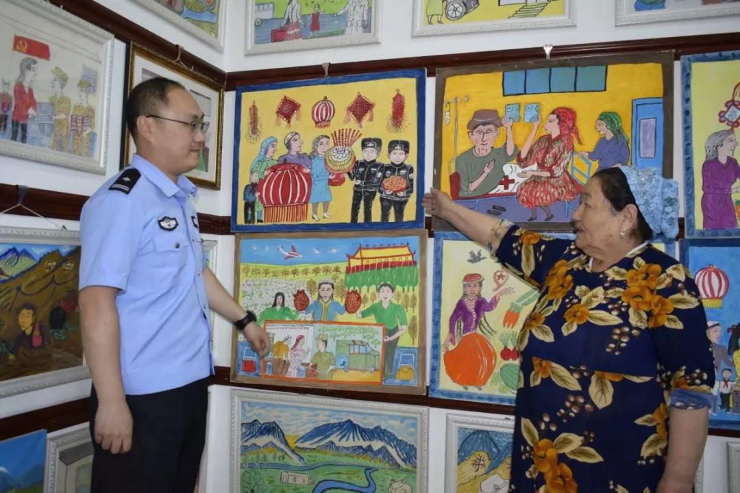 走進“梵高”奶奶的作品展室,在她的數百件作品中,有很多畫面表現的是警民一家親的內容,一個個畫面背后是一個個感人的故事。