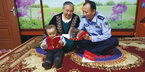 今年42歲的張建軍是烏魯木齊縣公安局板房溝派出所甘河子便民警務站站長。2017年初,他主動與轄區貧困居民庫里卡克爾一家結為親戚。