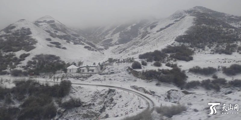 新疆平安網(wǎng)訊(天山網(wǎng)記者 費(fèi)璇)10月22日清晨,天空飄著鵝毛大雪,汽車從呼圖壁縣城駛出后,緩緩進(jìn)入天山腹地,經(jīng)過(guò)農(nóng)田,穿過(guò)丘陵,行駛在彎彎曲曲的盤山公路,周圍逐漸呈現(xiàn)出綺麗的丹霞地貌,赭紅色的山體在白霧大雪中若隱若現(xiàn),似夢(mèng)非夢(mèng)。