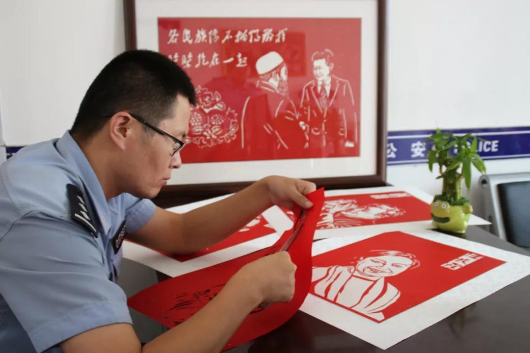 這組大型主題剪紙作品的作者就是--高新區(qū)(新市區(qū))友誼路派出所民警潘峰。畢業(yè)于山東聊城大學(xué)美術(shù)教育專(zhuān)業(yè)的他,學(xué)成后積極投身大學(xué)生西部志愿計(jì)劃來(lái)到了新疆,并于2010年成為了一名首府特警。