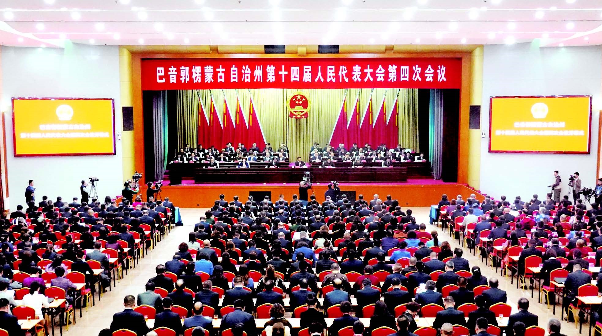 上午10時30分,開幕大會主持人史建勇宣布:巴音郭楞蒙古自治州第十四屆人民代表大會第四次會議開幕。全體起立,高唱國歌。