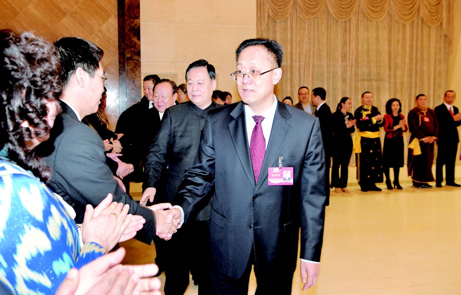 李剛一行來到人大代表、政協委員中間,同大家一一握手、互致問候、親切交流。