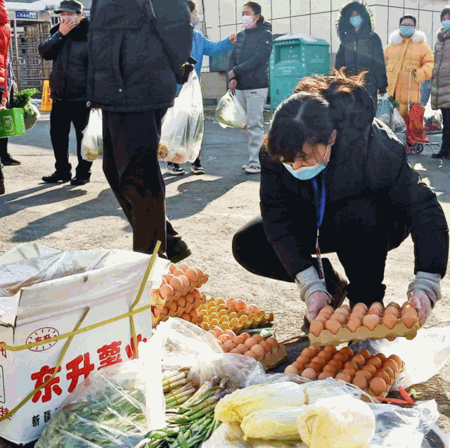 為給轄區居民提供生活便利,工作隊積極協調商戶進小區,保證小區居民能夠吃上新鮮、平價的蔬菜、水果。隊員們在現場維持秩序,確保居民在購置蔬菜時不聚集。