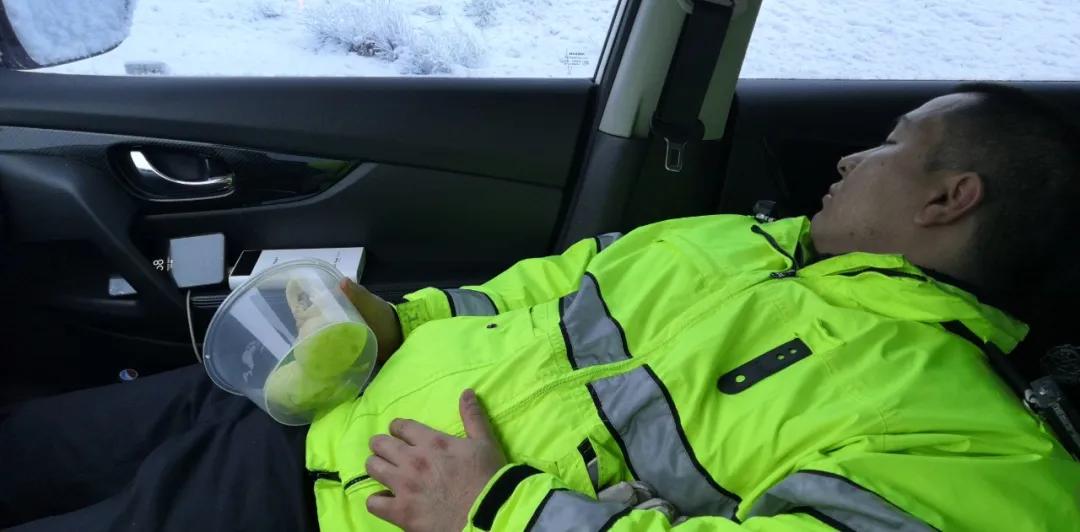 艾尼娃爾?居來(lái)提是自治區(qū)公安廳交警總隊(duì)高等級(jí)公路支隊(duì)東繞城大隊(duì)輔警,疫情防控阻擊戰(zhàn)以來(lái),他主動(dòng)請(qǐng)纓,每天奮戰(zhàn)在抗擊疫情第一線,對(duì)來(lái)往的車輛進(jìn)行檢查、消毒。和同事們一起為拋錨車輛提供流動(dòng)加油服務(wù),為被困人員免費(fèi)配送生活物資,并做好交通安全、疫情防控的宣傳工作。在一次交通疏導(dǎo)分流工作中,連續(xù)工作了15個(gè)的他,手里拿著包子還沒(méi)等吃完就睡著了。