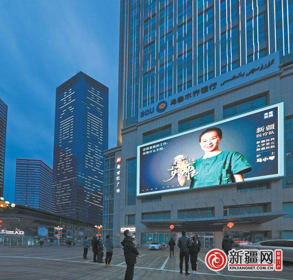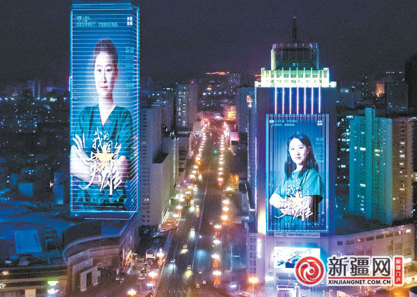 3月8日20時(shí),西大橋旁的烏魯木齊銀行電子大屏正循環(huán)播放著新疆援助武漢醫(yī)療隊(duì)部分成員的光影故事。