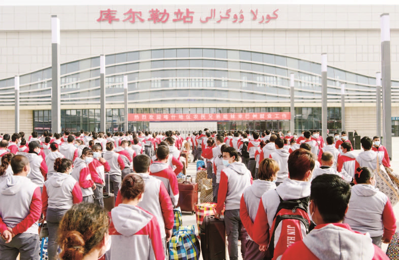 新疆平安網訊 3月18日上午,喀什地區貧困家庭勞動力乘坐喀什至巴州專列抵達庫爾勒火車站。巴州接收喀什地區貧困家庭勞動力轉移就業歡迎儀式在庫爾勒火車站站前廣場舉行,1847名貧困家庭勞動力將通過巴州各企業、公益性崗位實現轉移就業。