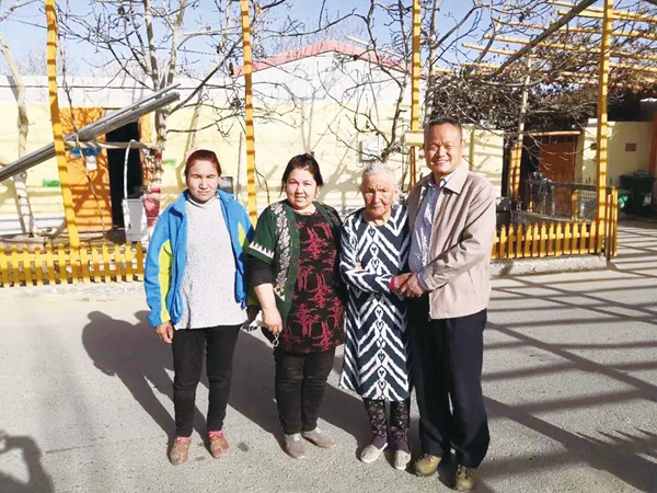 瓊庫勒村村民凱麥爾罕·吾舒爾年近90歲,是自治區高級法院法警總隊副總隊長李?,B的結對親戚。李?,B一到凱麥爾罕家,就受到熱烈歡迎,老人的兒子米熱阿不都拉·馬合木提準備了可口的飯菜。