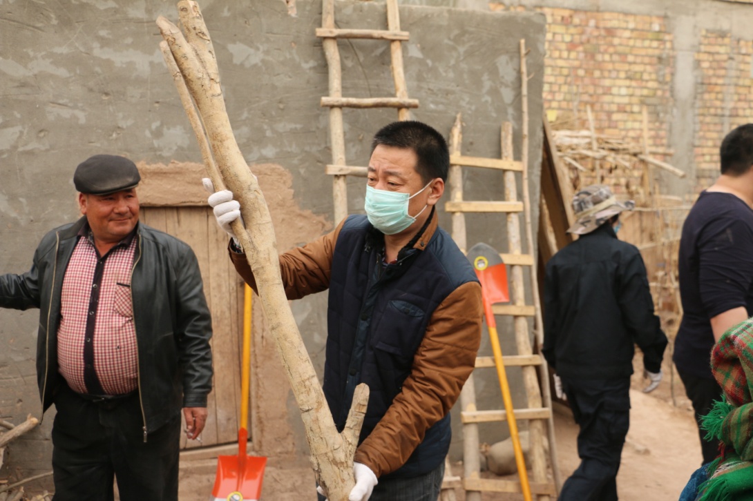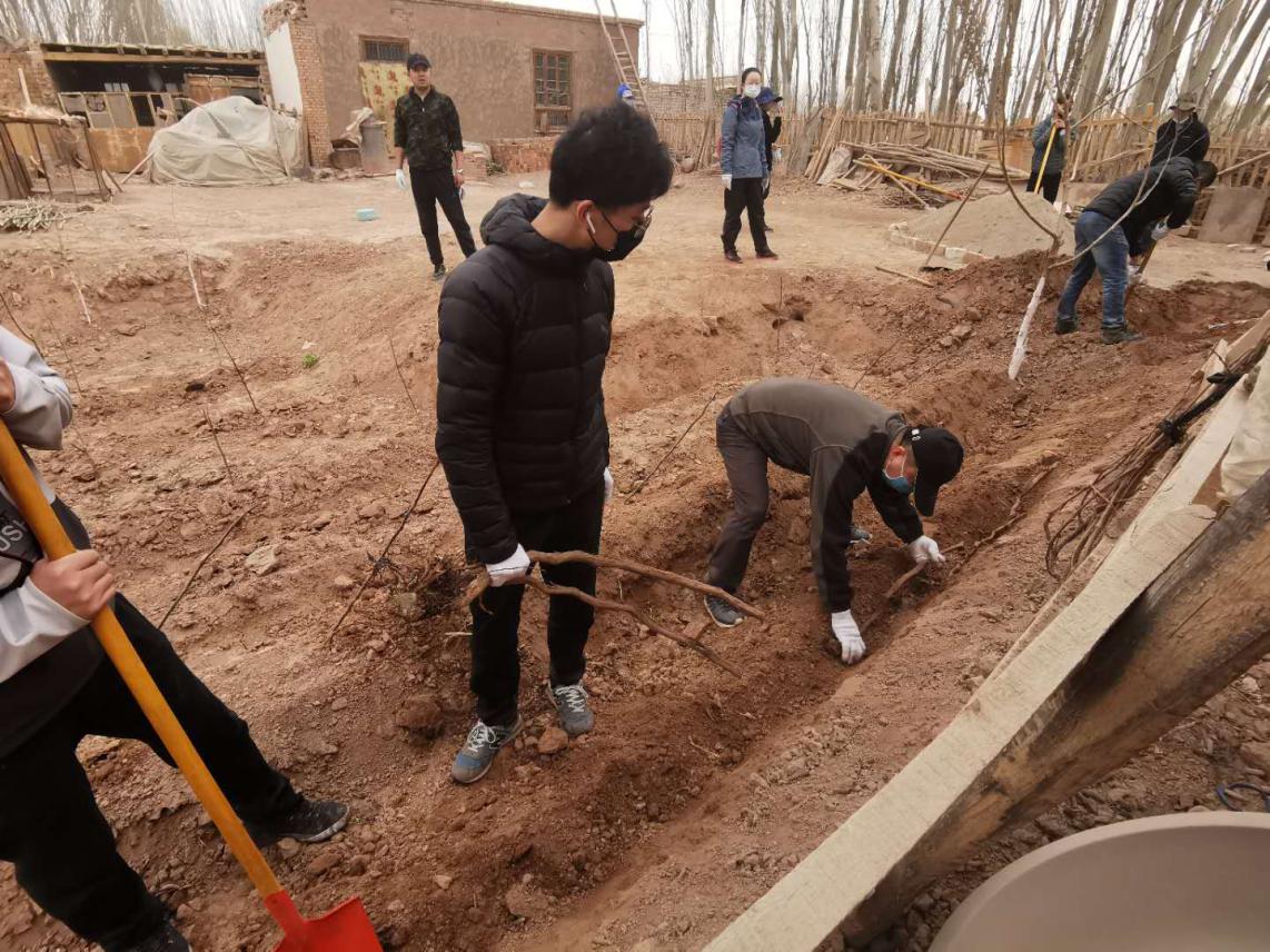 結親干部立刻投入到埋葡萄藤的工作中,有的將地里多余的樹杈統一移到一處;有的將地里原先種的無花果樹移到別處;有的在村民的指導下挖出深度適宜的坑,將葡萄藤放進去后再由其他干部用土填坑。