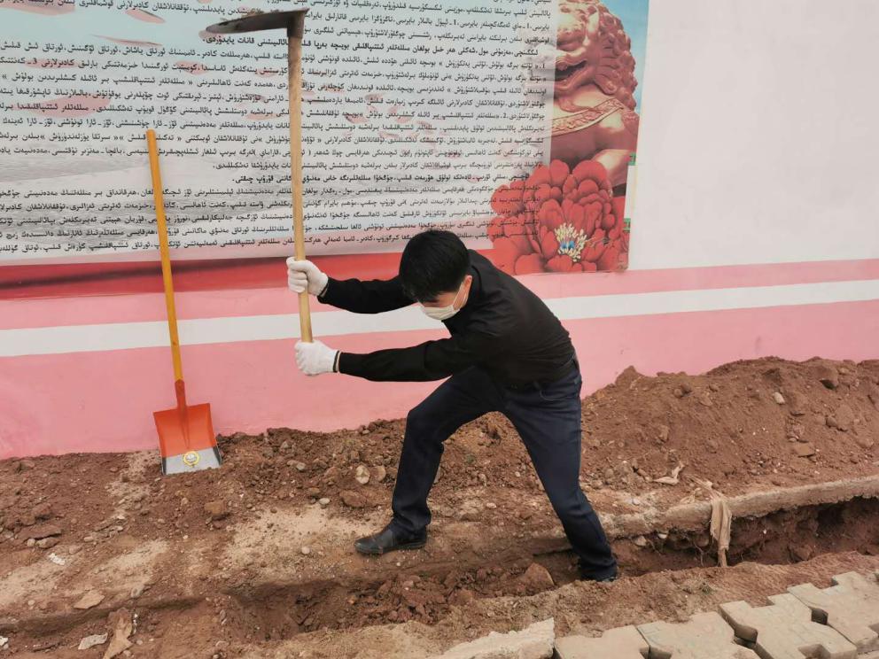 說干就干,結親干部用鐵锨將花磚撬開,害怕破壞埋在深處的排水管,小心地挖出一條埋水管的管溝。“雖然,我們沒有種樹,有些遺憾,但是為村里干了些力所能及的事情,心里也是很高興的!”結親干部紛紛表示。