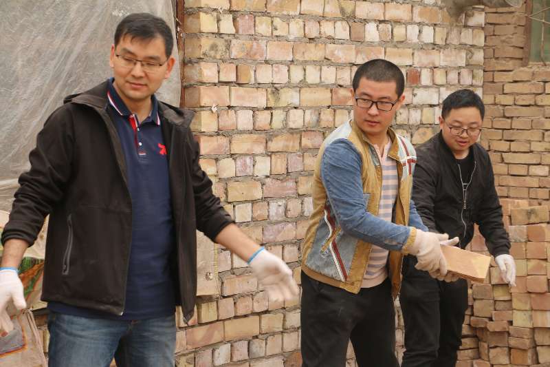 “快快快,大家站成一排,將這些磚塊從這里挪到一起”不知是誰喊了一聲,結親干部們就立刻站成一排,接力傳磚塊,果然是人多力量大,一不會兒院子就變得整潔和干凈了。
