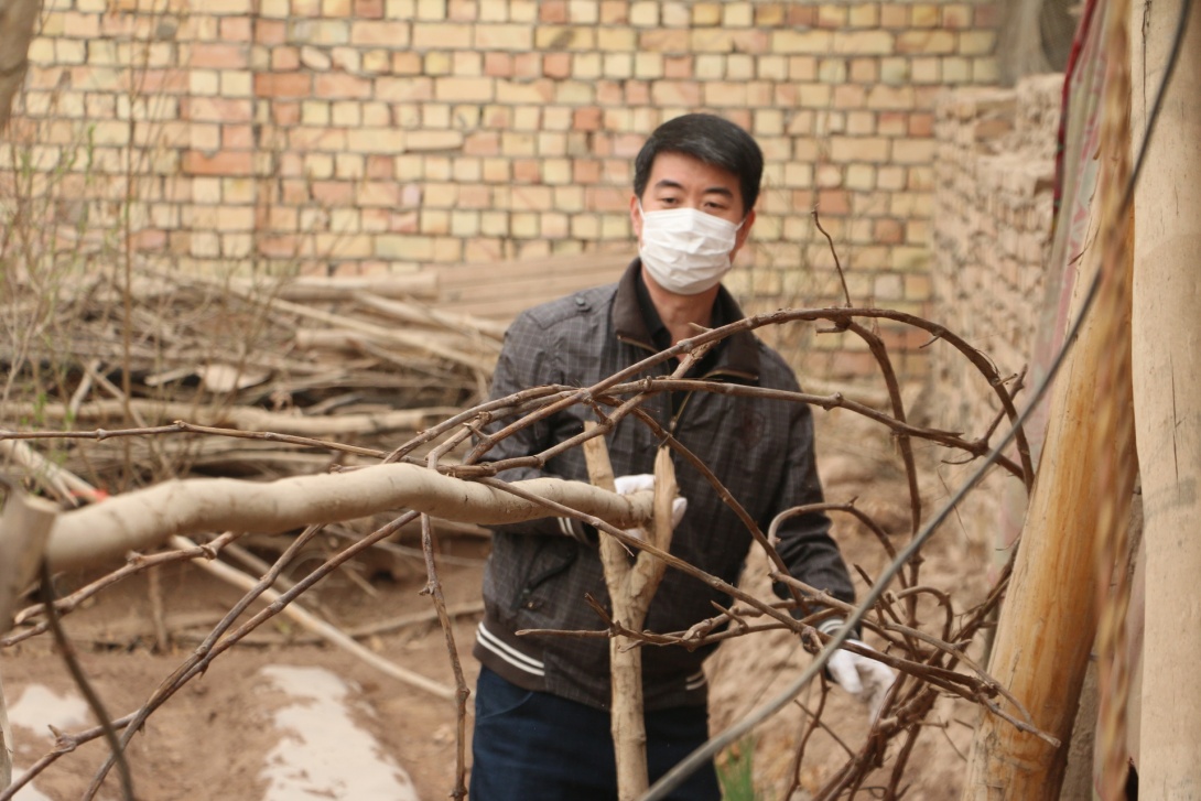 當所有的葡萄藤埋好后,發現約賽尹家的庭院里到處都是修房子所用的磚塊、喂養牲畜的草料和一些廢棄的木材,于是,結親干部們又紛紛擼起袖子開始整理庭院。
