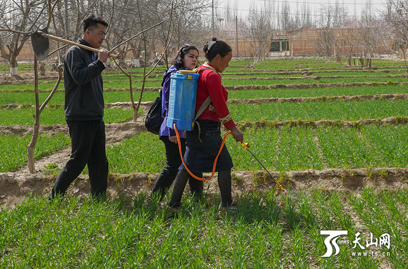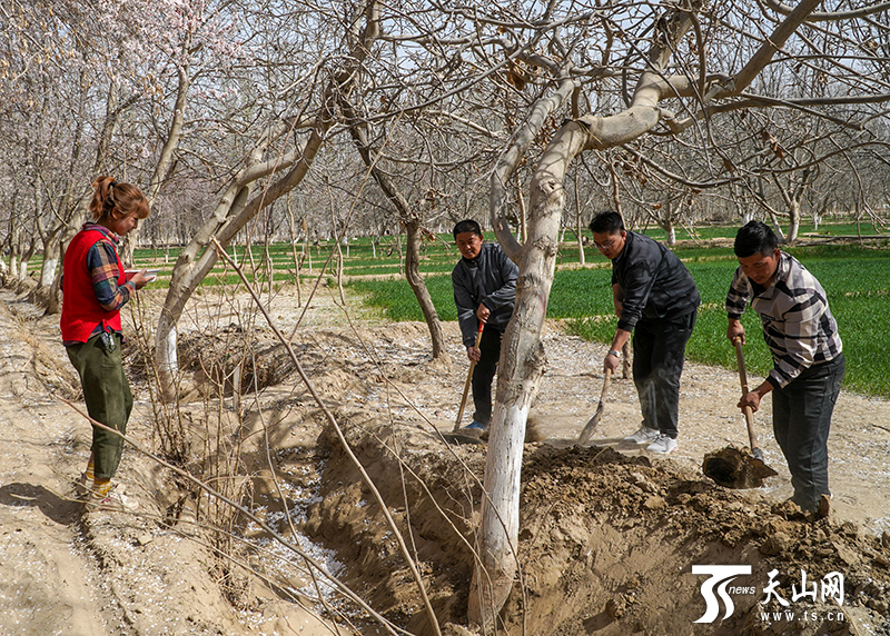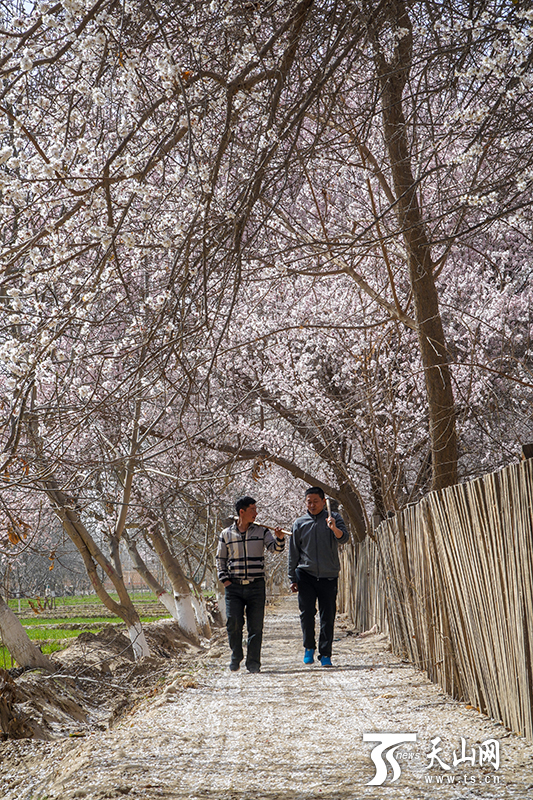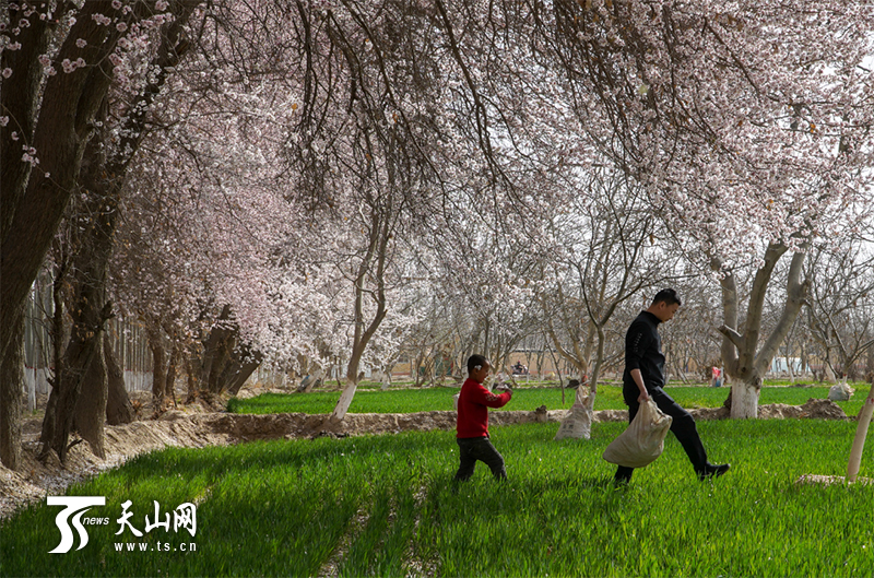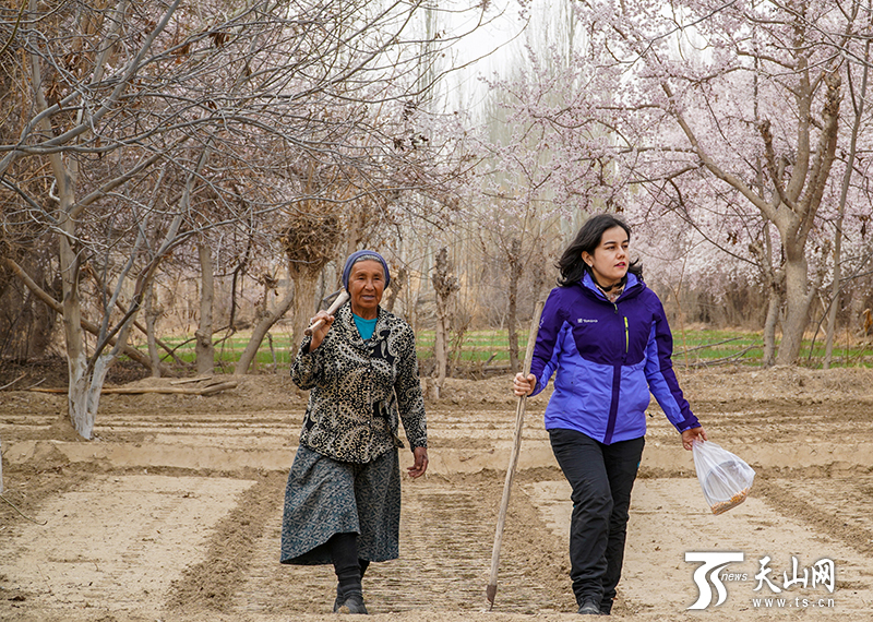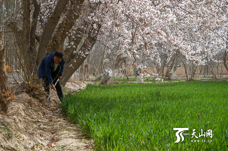 新疆平安網(wǎng)訊 春回大地,又是一年春耕忙。3月25日,在和田地區(qū)皮山縣喬達(dá)鄉(xiāng)阿亞格喬達(dá)村,自治區(qū)黨委宣傳部的結(jié)親干部職工扛起鋤頭,與自己的結(jié)對(duì)親戚一起投入春耕播種工作中。除雜草、鋪地膜……結(jié)親干部與親戚邊話家常邊勞作。此時(shí),農(nóng)田旁的杏花開(kāi)得正盛。春風(fēng)將杏花吹落,好一幅“杏花村”中的春耕圖。忙累了,坐在田埂上休息會(huì)兒,喝一碗村民送來(lái)的酸奶子,在你來(lái)我往的時(shí)光流逝中,各民族之間情誼愈濃。