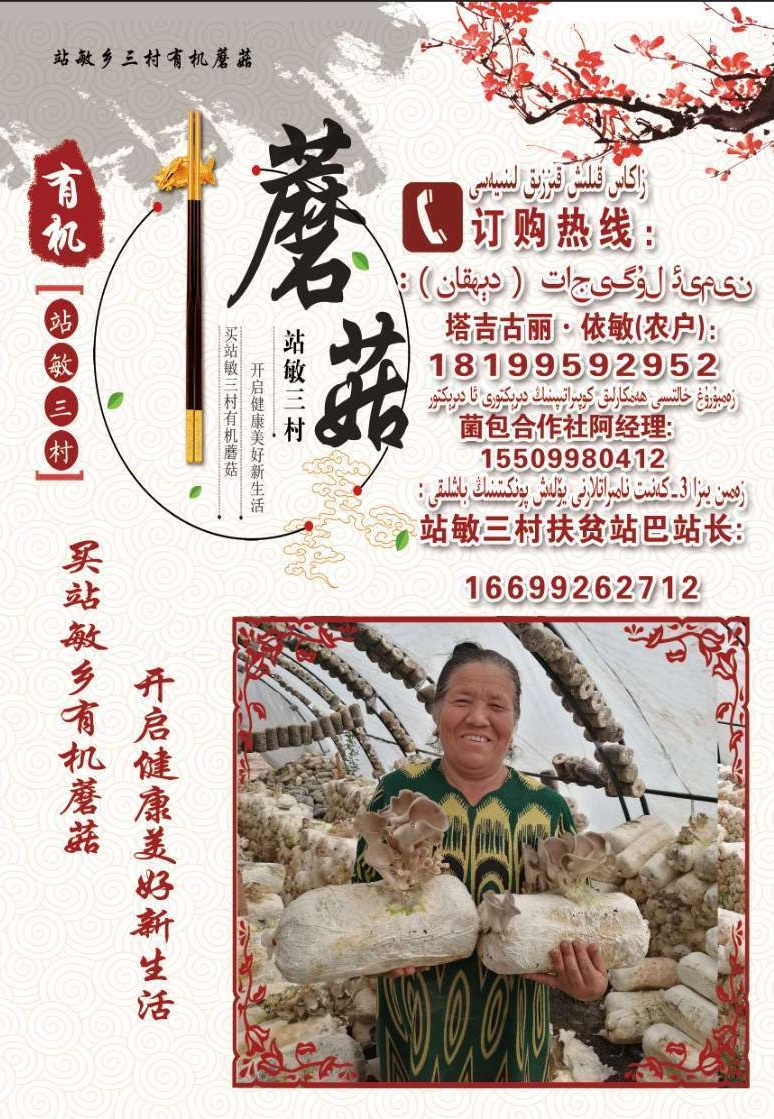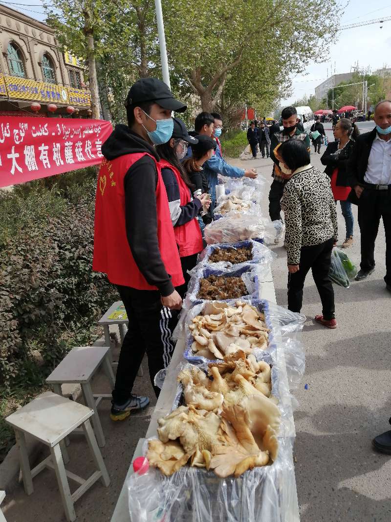 當天,自治區黨委政法委駐疏附縣站敏鄉艾日克貝西(3)村工作隊組織3村7位大棚有機蘑菇種植戶,在大巴扎開展宣傳推廣活動。
