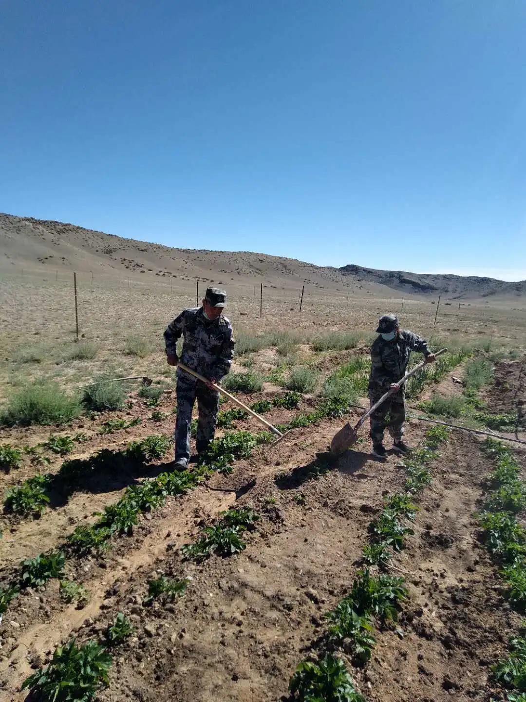 為了減輕塔克什肯鎮黨委、鎮政府配送蔬菜的壓力,有了水井后,木拉提別克帶頭在警務站翻地種菜。使站內綠樹成蔭,護邊員也能夠吃上自己親手種的新鮮蔬菜,切實為鎮黨委、鎮政府減輕了一定的壓力,更為全縣護邊員隊伍樹立起了榜樣。2019年,木拉提別克在安居房的后院蓋起了一座120平方米的棚圈,冬天用來圈養牛羊和安置馬匹。現在他在工作之余,還飼養了幾十頭牲畜,木拉提別克在守護邊境安定的同時也守護了自己小家的平安和富足。