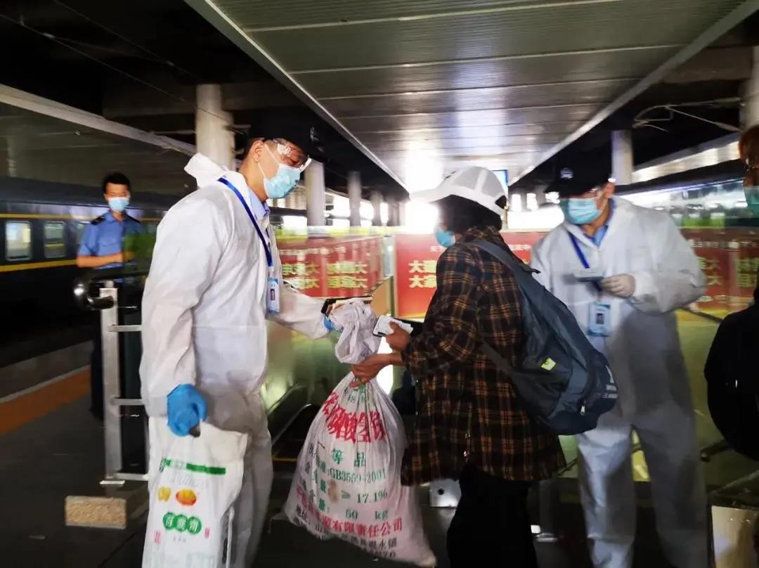 “這么多行李啊,我來幫你拿!”7月17日下午,烏魯木齊烈日炎炎,最高溫度達36攝氏度。當一名帶著大包小箱的旅客下了濟南到烏魯木齊的高鐵時,正在站臺上執勤,穿一身防護服,戴著護目鏡的陳迪丹主動上前幫他提起兩件行李,頓時讓旅客感受到貼心的清涼。