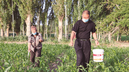 今年3月底,工作隊隊員吐尼亞孜·艾依提完成了駐村任務,即將返回單位,他和新隊員吐爾遜·庫爾班交接工作,帶他入戶走訪。來到村民坎吉汗·阿皮孜家,看到她正拄著拐杖在院子里活動,吐尼亞孜向吐爾遜介紹其受傷的經過。
