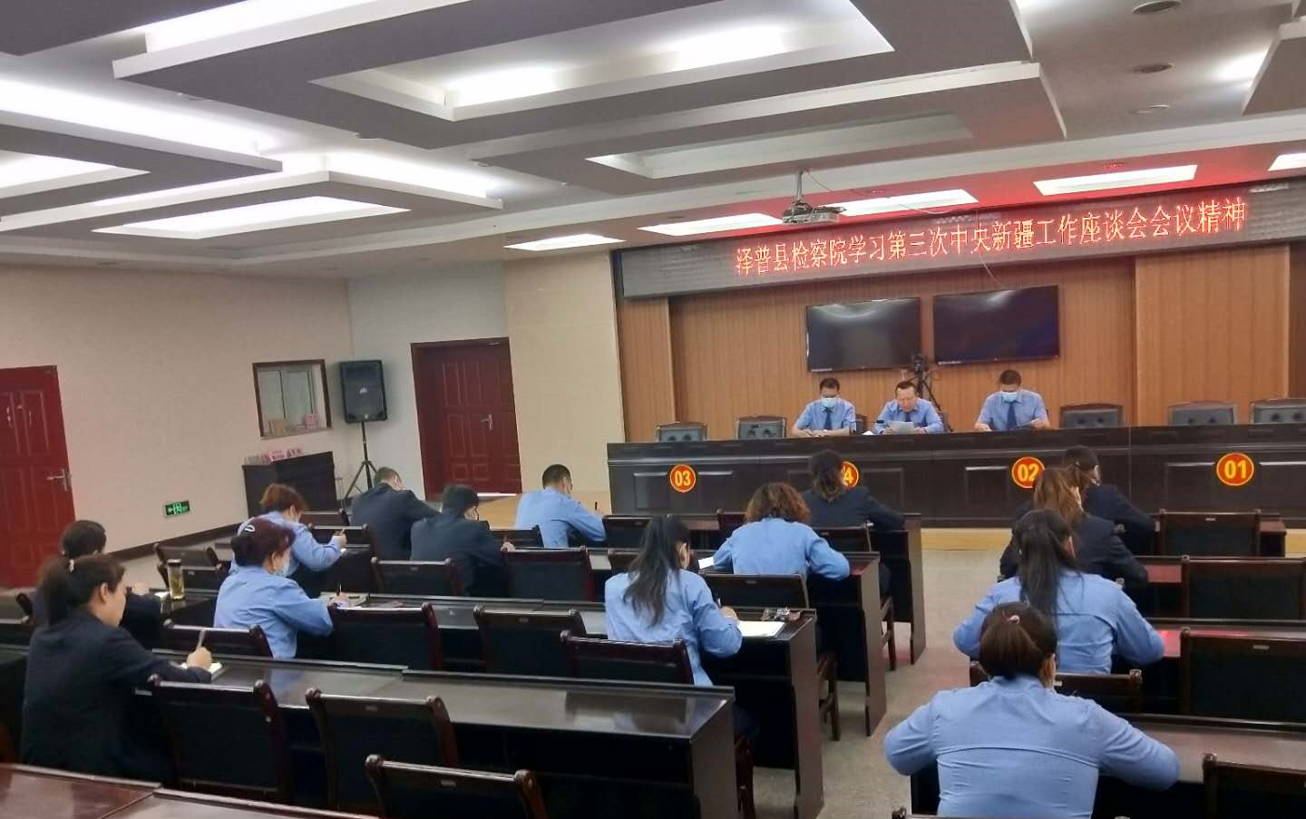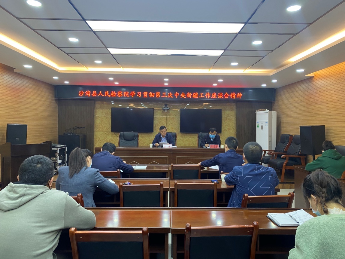 塔城地區沙灣縣人民檢察院召開黨組(擴大)會和全院干警大會,組織學習第三次中央新疆工作座談會精神。