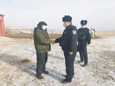每當牧民向冬季草場轉移時,由于路途遙遠,艾爾登喬魯會帶著馬背巡邏隊開展巡邏工作,把牧民護送到安全的地段才離開。因此,從每年10月到次年5月是巴音布魯克派出所救援任務最重的時候,只要一接到救援電話,艾爾登喬魯和同事就攜帶方便面、礦泉水、馕等食品趕赴現場,在惡劣的風交雪天氣中解救被困群眾和牲畜,全力保護轄區牧民生命財產安全。