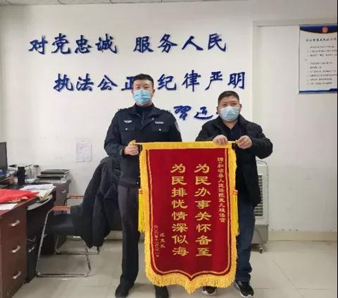 新疆平安網訊 “感謝法院,感謝法官,謝謝你幫我執行回了案款,真的太感謝了?!?020年12月22日,兩名當事人手捧一面書寫著“為民辦事關懷備至,為民排憂情深似海”的錦旗,來到巴音郭楞蒙古自治州和碩縣人民法院執行局。
