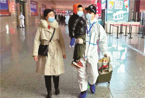 2020年12月8日中午,在烏魯木齊站,當一輛滿載旅客的列車從濟南到站后,一位身穿白色防護服的青年民警帶隊上車檢查。他貼心的服務,得到旅客的認可。