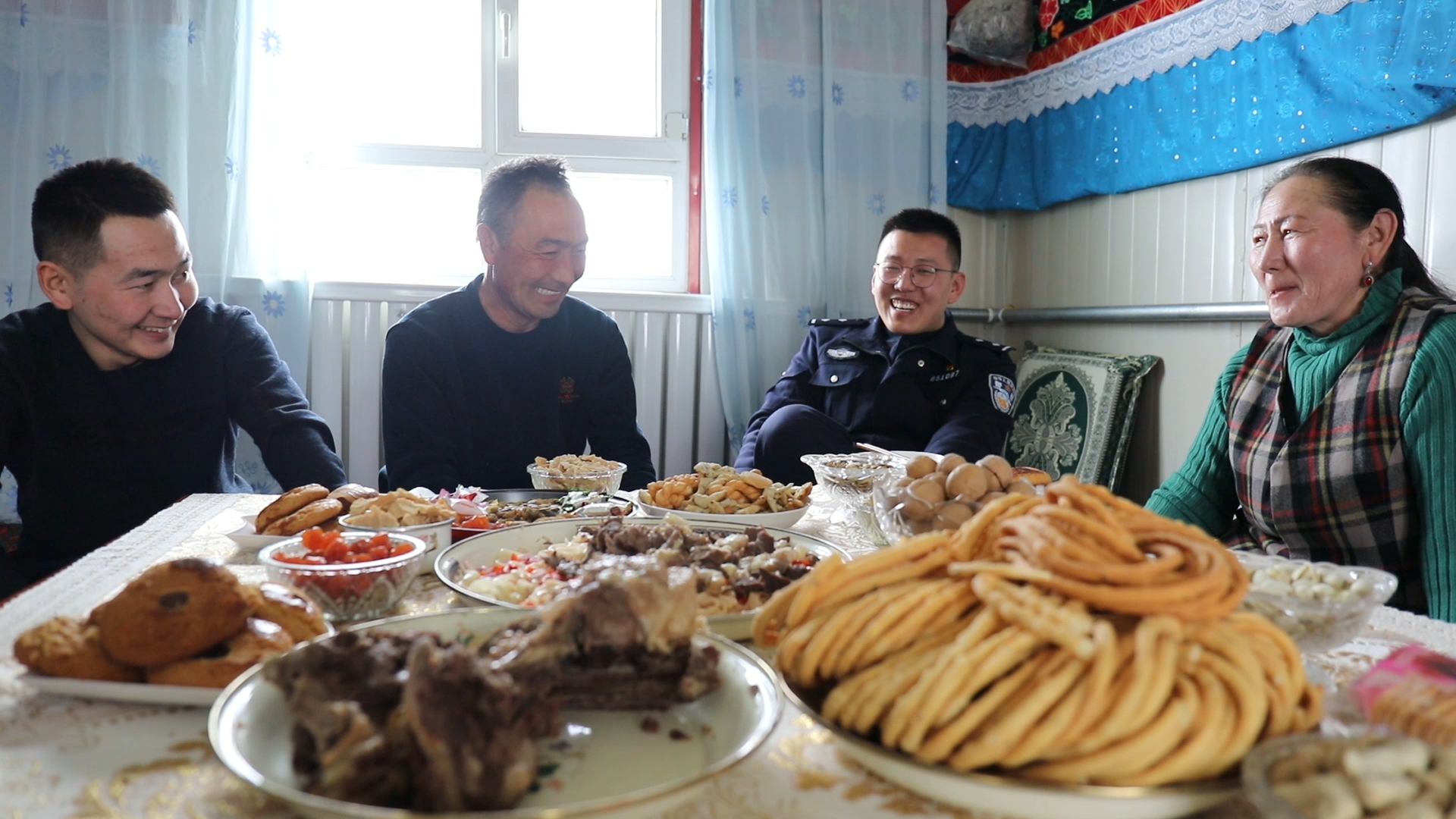 爬過5座山,越過5道河溝,在蜿蜒崎嶇的山路上走了1個多小時后,新疆出入境邊防檢查總站博爾塔拉蒙古自治州邊境管理支隊民警蘆勝磊遠遠看到了站在門口迎接他的親戚甫·何新、確·代麗夫婦。