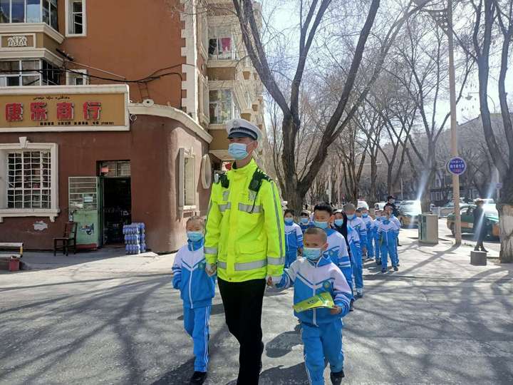 新疆平安網訊 4月6日,阿勒泰地區阿勒泰市公安局交警大隊強化措施,加大力度,持續深化“護學崗”行動,全力護航學校周邊交通秩序。