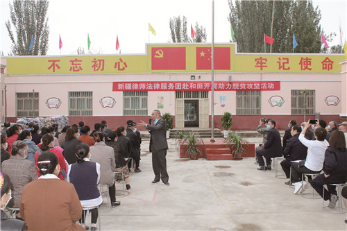 在阿克蘇、巴州的3個街道、6個鄉鎮開展普法宣講時,普法志愿者以“公民如何做一個忠誠愛國者”為主題,從深入學習黨的十九大精神、維護民族團結等方面開展主題宣講,教育引導大家要自覺踐行社會主義核心價值觀,做一名有夢想、有信念、有擔當的公民。