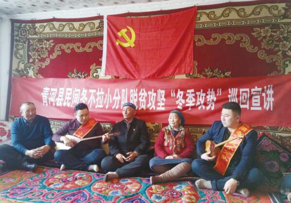 2019年4月3日,在青河縣查干郭勒鄉薩爾布拉克村,一場阿肯彈唱普法活動正在進行。近年來,該縣選拔表達能力強、影響力大的“阿肯”,經過“法律明白人”培訓,組建12支“阿肯彈唱隊”,借助各鄉(鎮)文藝演出平臺,用“土話”“草根語言”,通過集中宣講、送法入戶、隨時彈唱等形式展現法治文化,開展法治宣傳教育。
