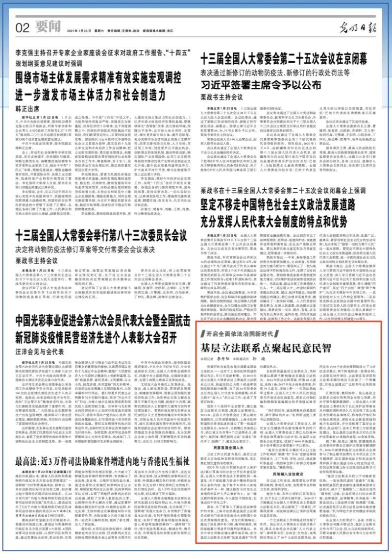 來(lái)中學(xué)生的修法建議最終被采納,成為基層立法聯(lián)系點(diǎn)發(fā)揮“民意直通車”作用的最佳代言。