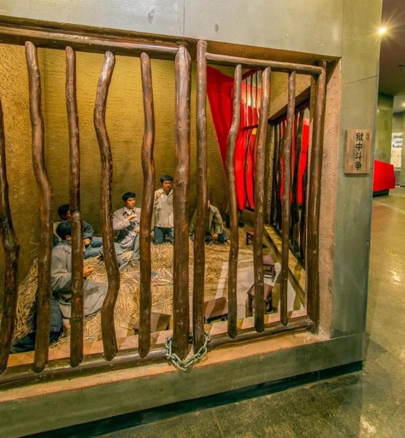 “獄中斗爭”“獄中審判”“獄中女杰”……陳列館一處展廳里,以1:1的比例真實還原了當年在新疆的中國共產黨人和愛國進步人士被關押在監(jiān)獄里的場景。他們圍坐在一起,緊握拳頭,眼神里流露出誓與敵人抗爭到底的堅毅。