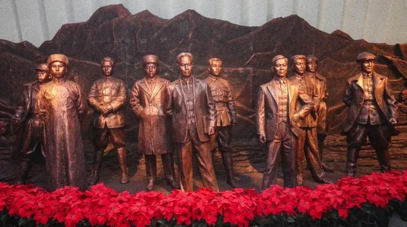 沿左側臺階而上,陳潭秋、毛澤民、林基路、杜重遠、喬國楨等十位烈士的大型人物群體雕像出現在眼前,烈士們神情堅毅,目視遠方,震撼人心。