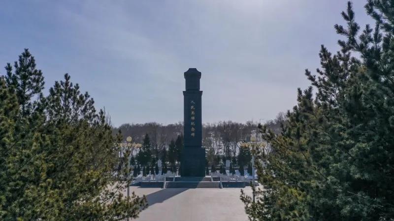 走出陳列館,沿陵園大道向東走,藍天之下、松柏之間,紀念廣場上的人民英雄紀念碑和一座座無聲的烈士墓碑顯得格外莊嚴而偉岸。