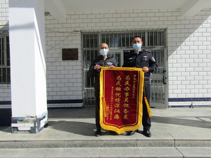 4月25日,老人家屬將一面錦旗送至康其派出所以表達對民警的謝意。