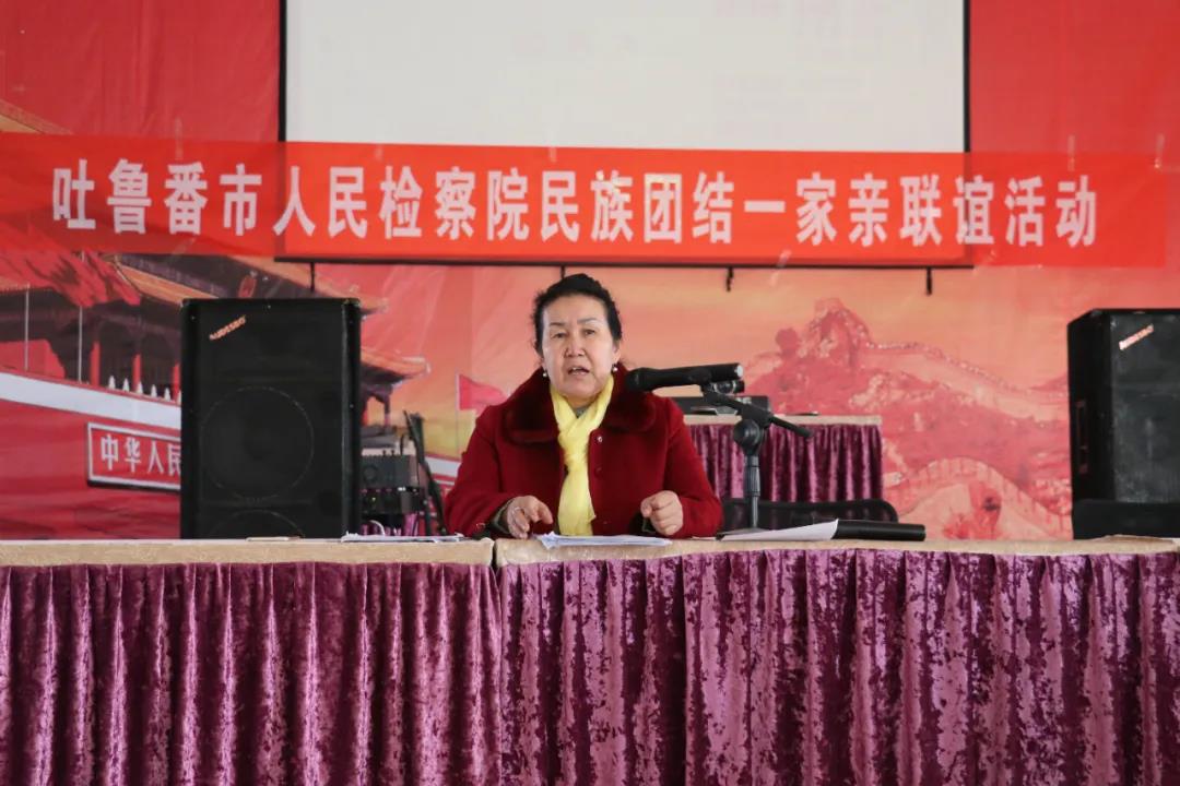 瑪力亞木(前排左四)帶領吐魯番市人民檢察院干警到高昌路綠洲社區開展志愿服務活動
