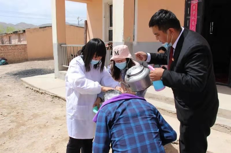 當(dāng)日,烏恰縣人民檢察院檢察長塔來古麗·哈西哈爾巴依帶上趙小麗到腿部有殘疾的村民喀什喀爾·馬旦家上門為他義務(wù)理發(fā)??吹疥?duì)員們又給他擦臉、又給他洗頭,喀什喀爾·馬旦的眼里泛起了淚花,激動(dòng)地說:“謝謝黨對他無微不至的關(guān)懷和照顧,謝謝檢察院的干警們,這輩子第一次有人上門來為我理發(fā),而且是共產(chǎn)黨的干部來為我免費(fèi)理發(fā)。”