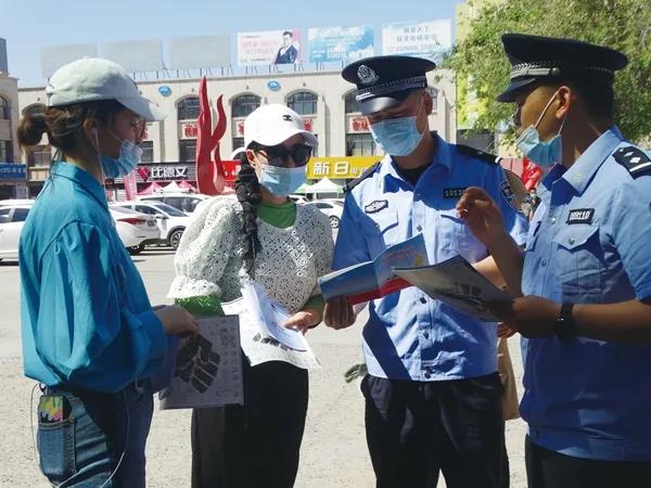 近日,塔城地區額敏縣公安局經偵大隊、刑偵大隊聯合縣人民檢察院開展“抵制高收益誘惑 警惕非法集資陷阱”宣傳活動,引導轄區群眾樹立正確理財觀念,增強風險防范意識。圖為民警向過往群眾講解相關法律知識。(新疆法制報)