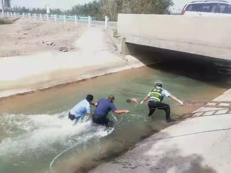 6月19日,阿克蘇地區沙雅縣公安局交通管理大隊民輔警在英買力公安檢查站巡邏時,發現道路旁的防滲渠里漂著疑似人形的不明物體,連忙上前查看情況。