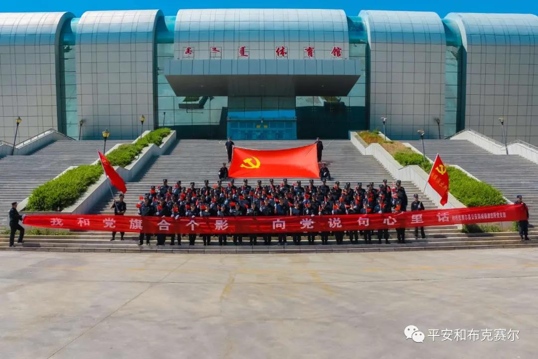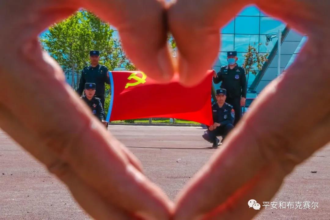 6月21日,塔城地區和布克賽爾蒙古自治縣公安局城鎮派出所黨支部開展慶祝建黨100周年“我與黨旗合個影”活動。